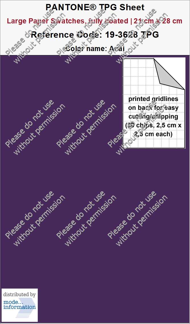 PANTONE TPG Sheet 19-3628 TPG Acai (Large Paper Swatch Card, fully coated | 21 cm x 28 cm)